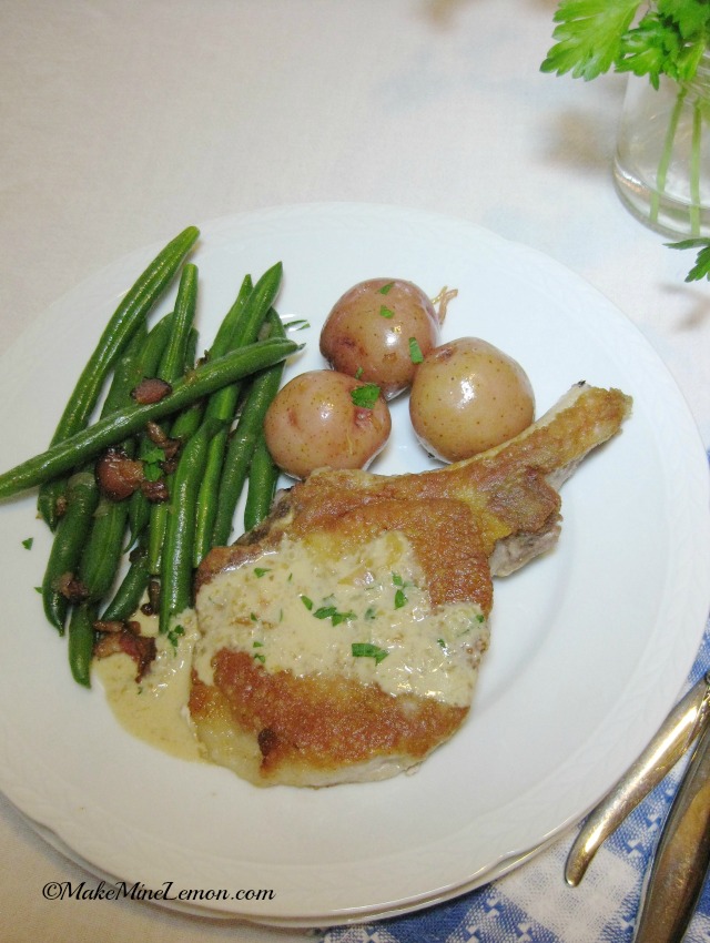 This is my kind of meal Madonna. Love the mustard sauce with the beautiful pork chops. The potatoes and green beans are a perfect accompaniment.